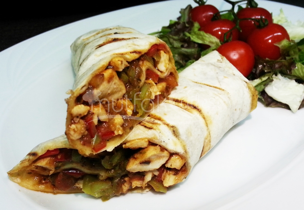 Çıtır tavuk,yeşillik,cheddar,sweet chilli sos ve yanında patates kızartması ile