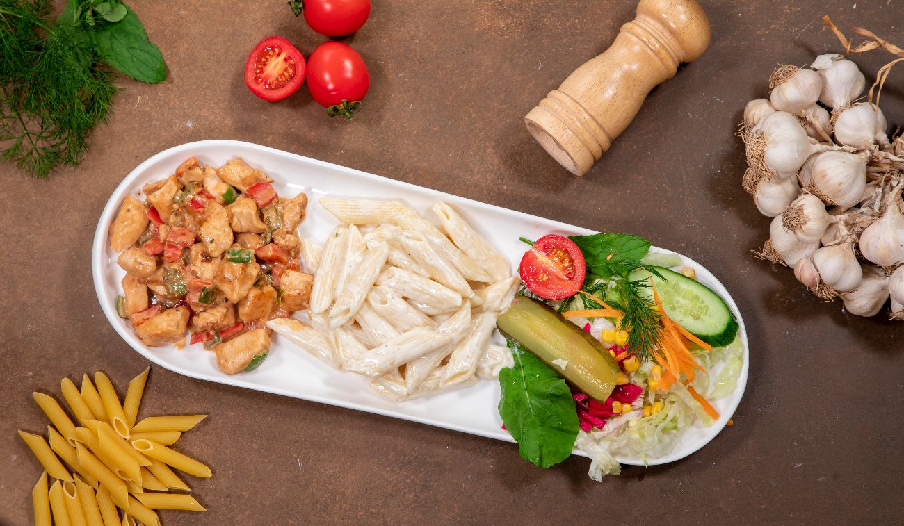 160 Gr Tavuk Göğüsü, Cafe De Paris Sos, Krema, Makarna, Yeşillik
